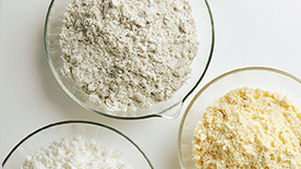 我公司不僅可以提供適用于水產品,畜產肉類的漿粉(唐揚粉、天婦羅粉、炸雞粉等),而且可以提供近年來國內需求急速增長的面包用預拌粉、機能性小麥粉等產品。 自開業以來,我公司提供的深切貫徹落實食品安全和品質的產品得到了客戶強有力的支持。